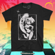 A two-sided pale blue tee featuring brand new comic art by Mikan!