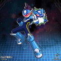 Explore the Wave World with the combined fusion of Geo Stelar and Omega-Xis with the EM Wave form of Mega Man. This hard enamel pin is charged up with a special green glitter treatment.